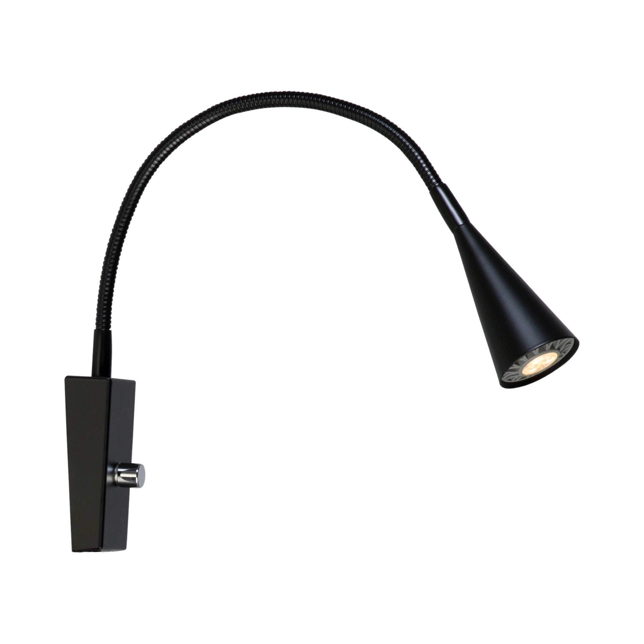 Ledro från Belid är en vägglampa i metall som finns i olika färger. Den har svart sladd och GU5,3 sockel.
