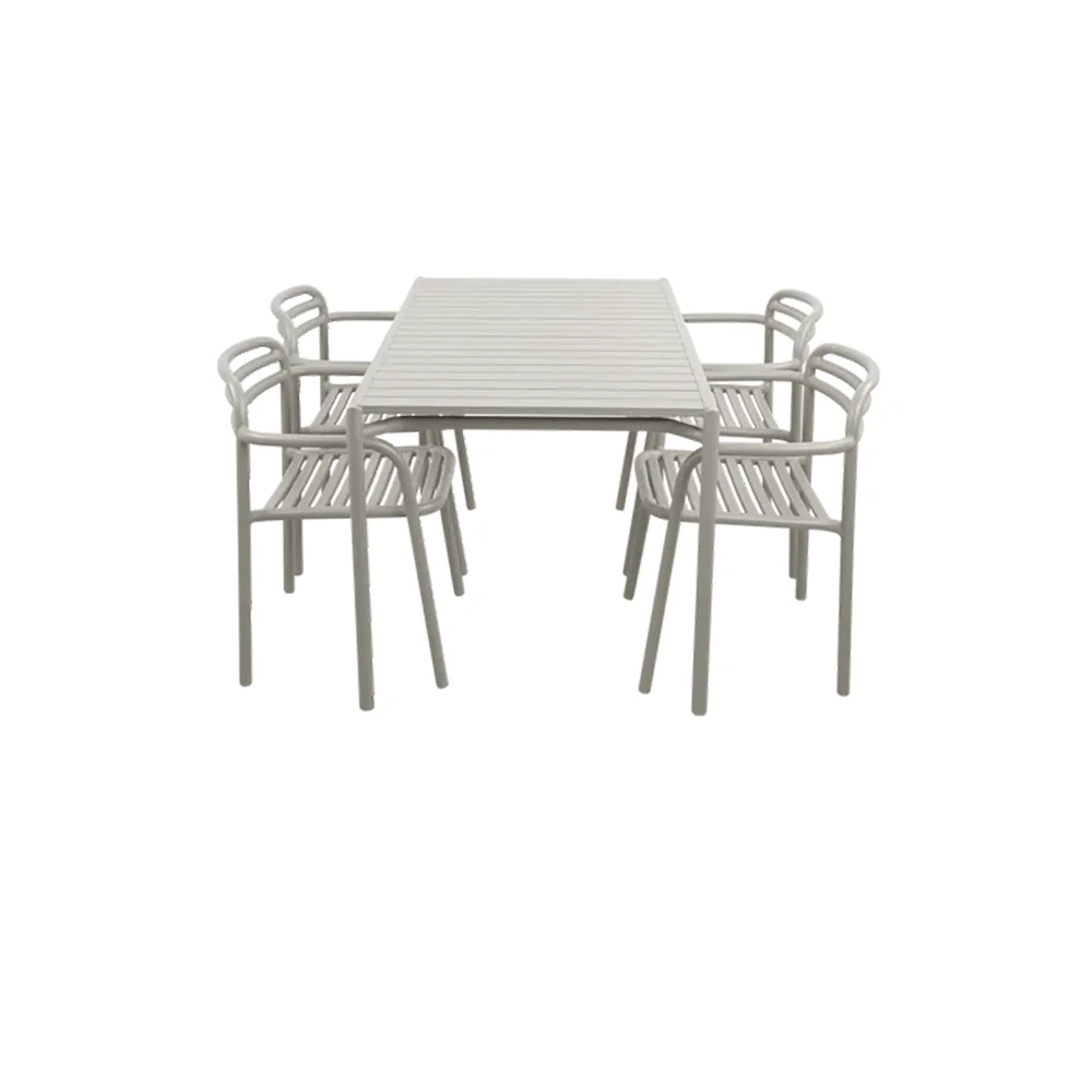 Bliss matbord inkl.fyra stolar med armstöd- Desert red aluminium
