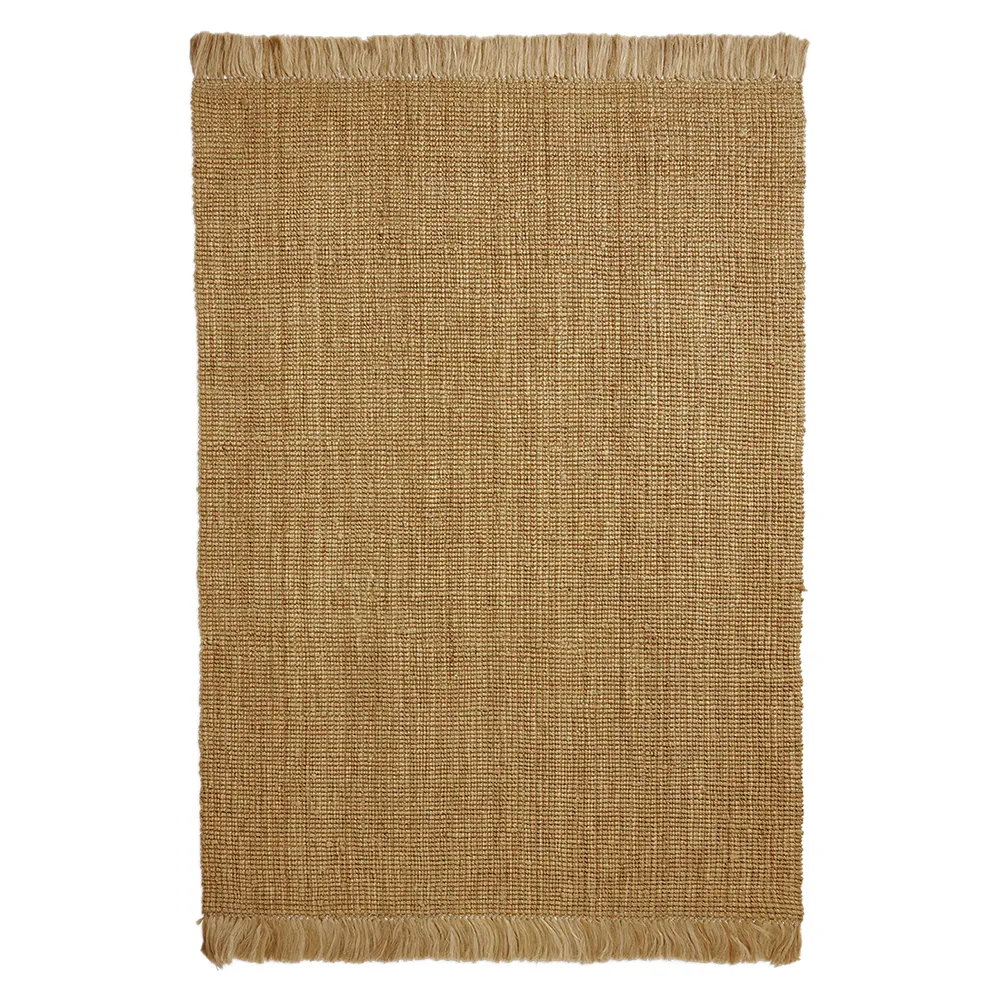 Athens Rug är inspirerad av de taktila mattor som ofta används i medelhavshus för att mjuka upp steninteriörer. Varje matta är omsorgsfullt handvävd i 100% jute, vilket skapar ett vackert lager-på-lager-effekt och ett naturligt, texturerat uttryck. Den fylliga, mjuka fransningen ger mattan en avslappnad och inbjudande känsla som kompletterar både vardagsrum, sovrum eller andra utrymmen som behöver värme och organisk taktilitet.