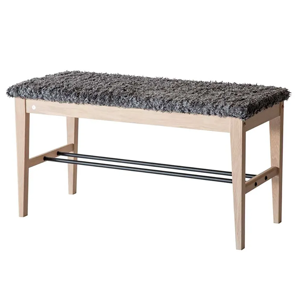 Cora Bänk Oljad Ek/Fårskinn Mörkgrå