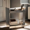 Lager Serveringsvagn hämtar sitt namn från det danska ordet för "lagerhus" och är inspirerad av den råa, industriella estetik som kännetecknar brutalismen. Med sin skulpturala, geometriska form blir den både ett iögonfallande designelement och en praktisk möbel i hemmet.