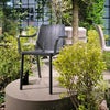 Tillverkad av enhetligt färgade glasfiberförstärkta polypropenhartser med UV-skydd, är Tiberina byggd för att stå emot både tid och väder. Den matta finishen ger en modern känsla, medan de halkfria fötterna säkerställer stabilitet på alla underlag.