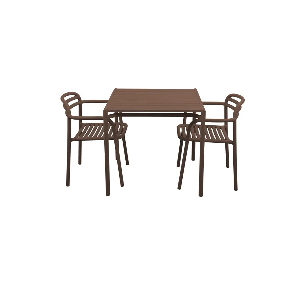 Bliss matbord inkl.två stolar med armstöd- Desert red aluminium